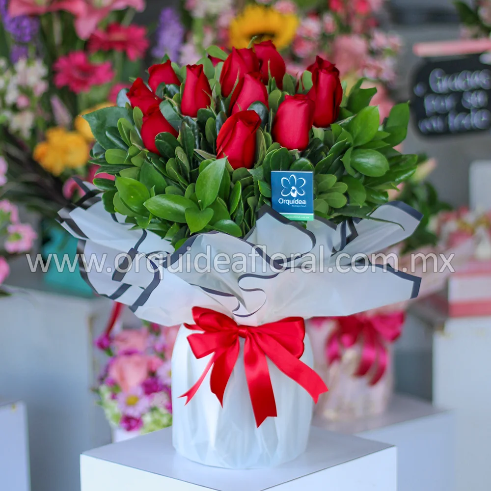 Jarrón 12 Rosas Rojas